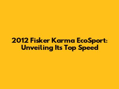 2012 Fisker Karma EcoSport: Unveiling Its Top Speed