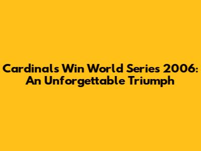 The 2006 World Series, guys, was an absolute rollercoaster! When we talk about underdog stories and unexpected victories, the St. Louis Cardinals' triumph that year definitely tops the list. It wasn't just a win; it was a testament to perseverance, teamwork, and a never-say-die attitude that captivated baseball fans everywhere. Let's dive into the details of this epic journey and relive the magic of the Cardinals' improbable championship run.