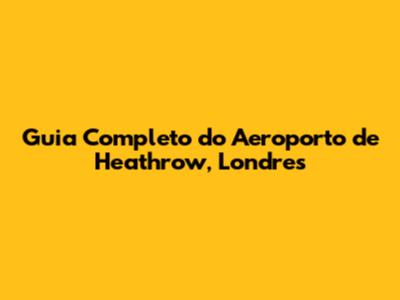 Guia Completo Do Aeroporto De Heathrow, Londres