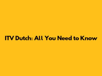 ITV Dutch: All You Need To Know