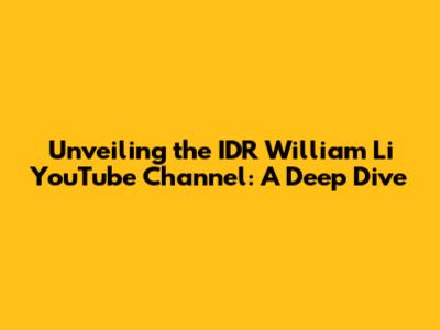 Unveiling The IDR William Li YouTube Channel: A Deep Dive